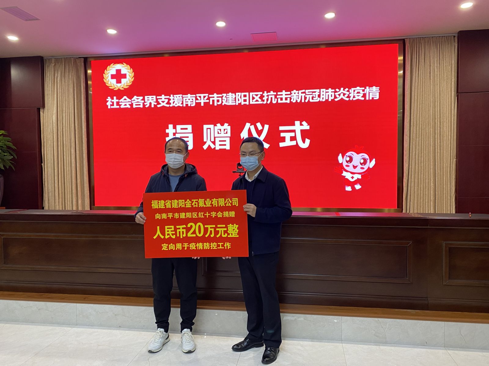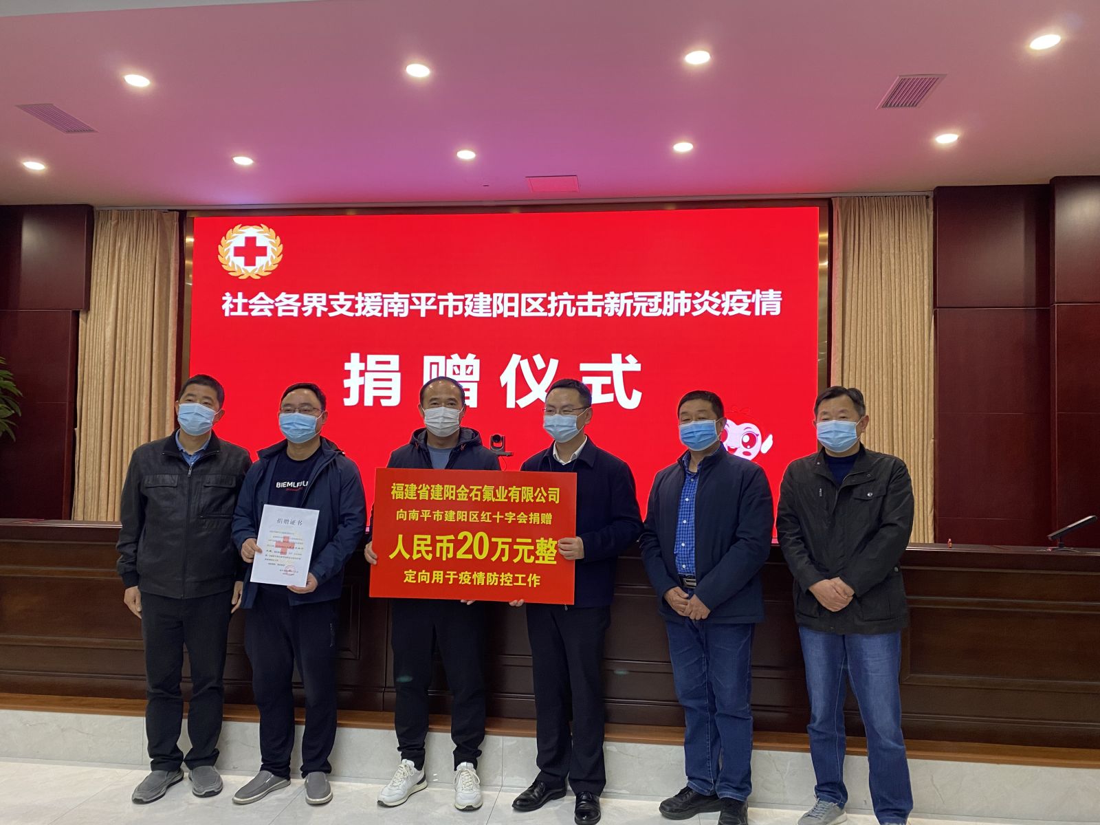 我司向南平市建陽區(qū)紅十字會(huì)捐贈(zèng)20萬元人民幣
